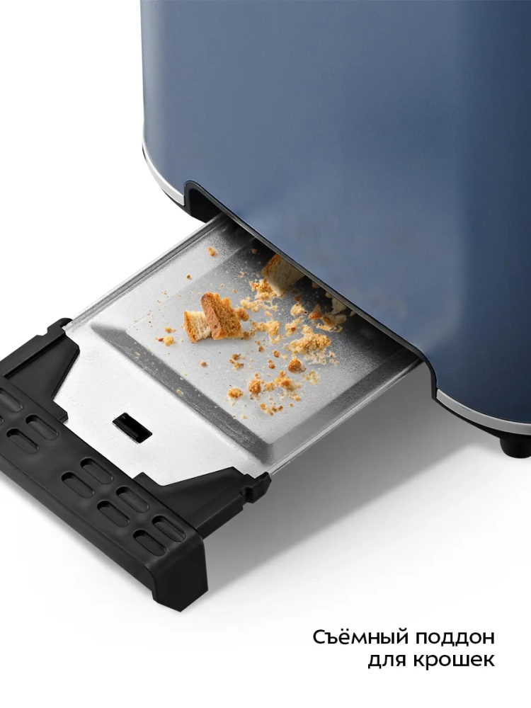 Съемный поддон для крошек позволяет легко и удобно очистить тостер от хлебных крошек.