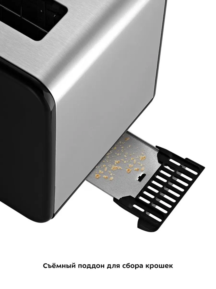 Съемный поддон для крошек позволяет легко и удобно очистить тостер от хлебных крошек.