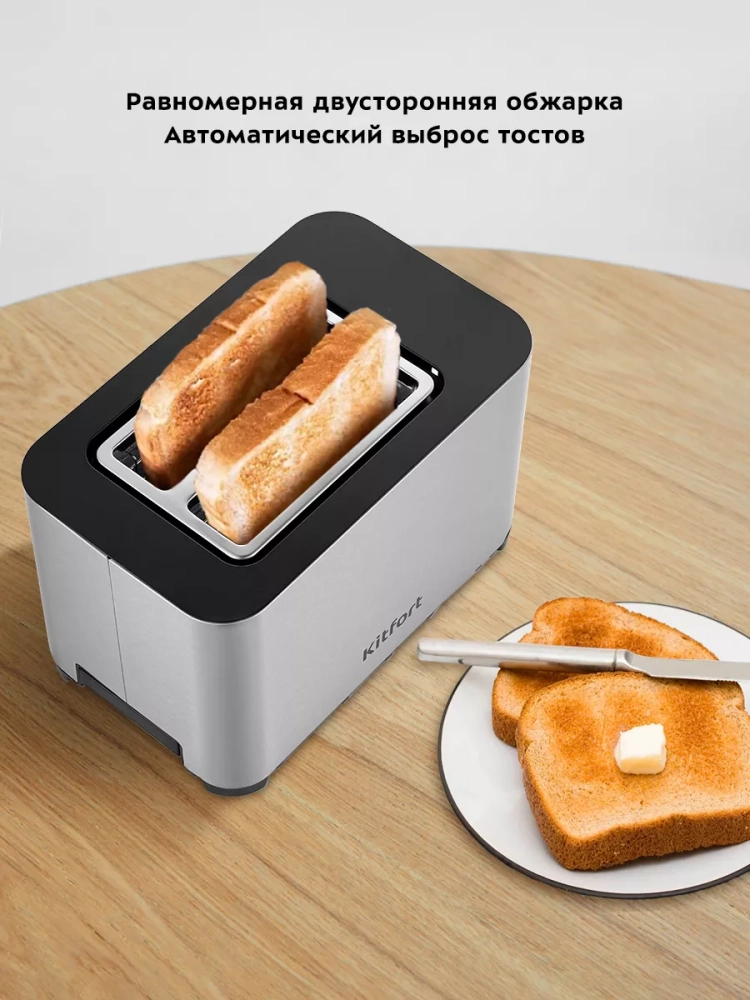 Электрический тостер Kitfort КТ-6201 создан для тех, кто любит полакомиться ароматным и хрустящим горячим поджаренным хлебом. Особый вкус и цвет корочки тостов получаются такими благодаря карамелизации сахара, содержащегося в тесте, при инфракрасном нагреве в процессе приготовления.