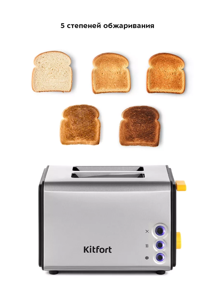 Электрический тостер Kitfort КТ-6203 создан для тех, кто любит полакомиться ароматным и хрустящим горячим поджаренным хлебом. Особый вкус и цвет корочки тостов получаются такими благодаря карамелизации сахара, содержащегося в муке, при инфракрасном нагреве в процессе приготовления.