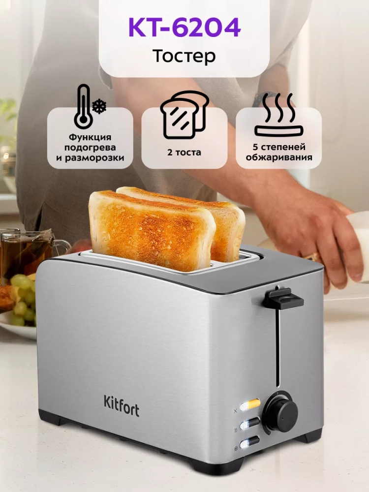 Электрический тостер Kitfort КТ-6204 создан для тех, кто любит полакомиться ароматным и хрустящим горячим поджаренным хлебом. Особый вкус и цвет корочки тостов получаются такими благодаря карамелизации сахара, содержащегося в тесте, при инфракрасном нагреве в процессе приготовления.