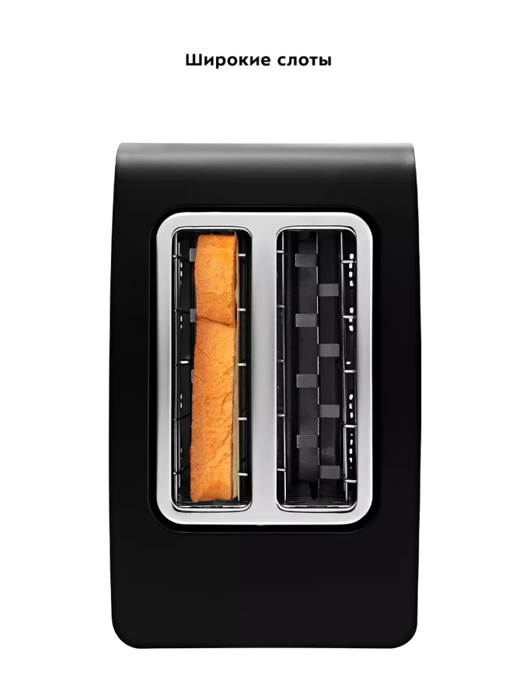 Благодаря широким слотам можно поджаривать толстые куски хлеба, а не только тонкие. Тосты автоматически центрируются, чтобы их обжарка с двух сторон была равномерной независимо от толщины куска. По окончании приготовления тостер автоматически отключается, а тосты поднимаются вверх, чтобы их было удобнее извлечь. Вы можете приготовить 1 или 2 тоста одновременно.
