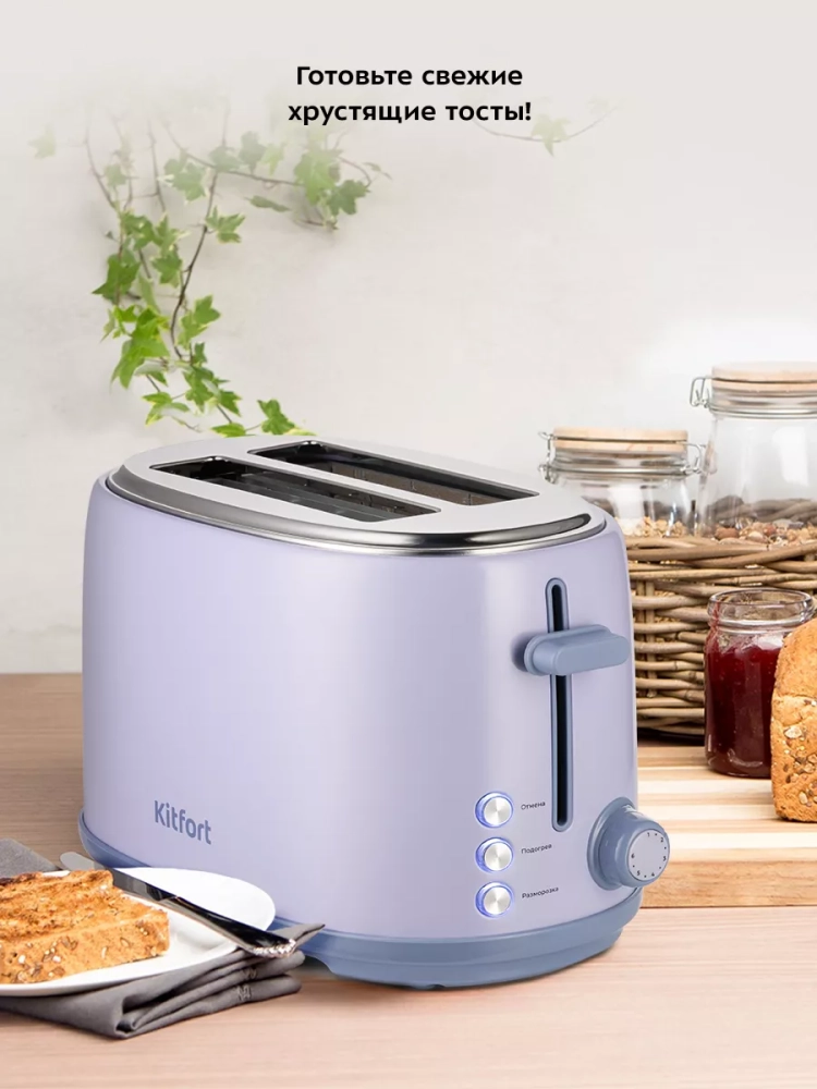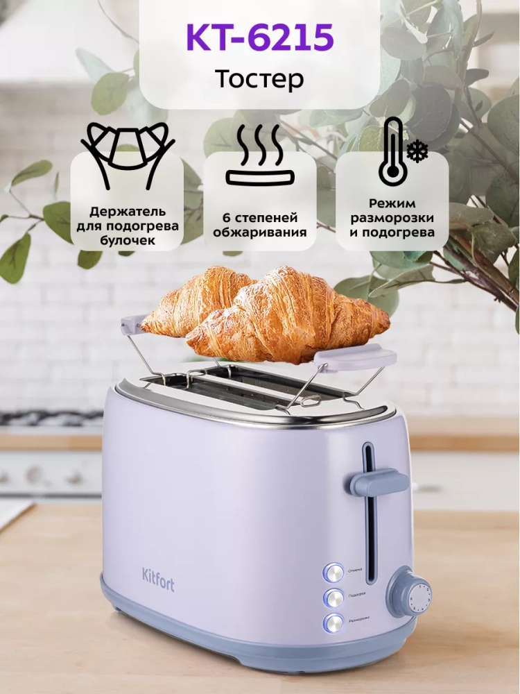 Тостер Kitfort КТ-6215 создан для тех, кто любит полакомиться ароматным и хрустящим горячим поджаренным хлебом. Особый вкус и цвет корочки тостов получаются такими благодаря карамелизации сахара, содержащегося в муке, при инфракрасном нагреве в процессе приготовления.