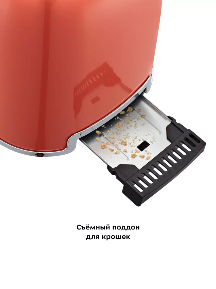 Съемный поддон для крошек позволяет легко и удобно очистить тостер от хлебных крошек.