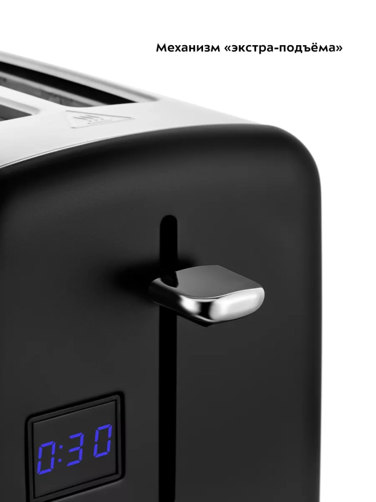 Тостер оснащен регулятором степени обжаривания и тремя кнопками со световыми индикаторами. Режим подогрева служит для подогрева уже готовых тостов, если они остыли. Режим разморозки позволяет приготовить тосты из замороженного хлеба. Загруженные тосты автоматически центрируются, чтобы их обжарка с двух сторон была равномерной независимо от толщины куска. По окончании приготовления тостер автоматически отключается, а тосты поднимаются вверх, чтобы их было удобнее извлечь. Механизм экстра-подъема позволяет приподнять выше тосты небольшого размера для их удобного извлечения. Вы можете приготовить 1 или 2 тоста одновременно.