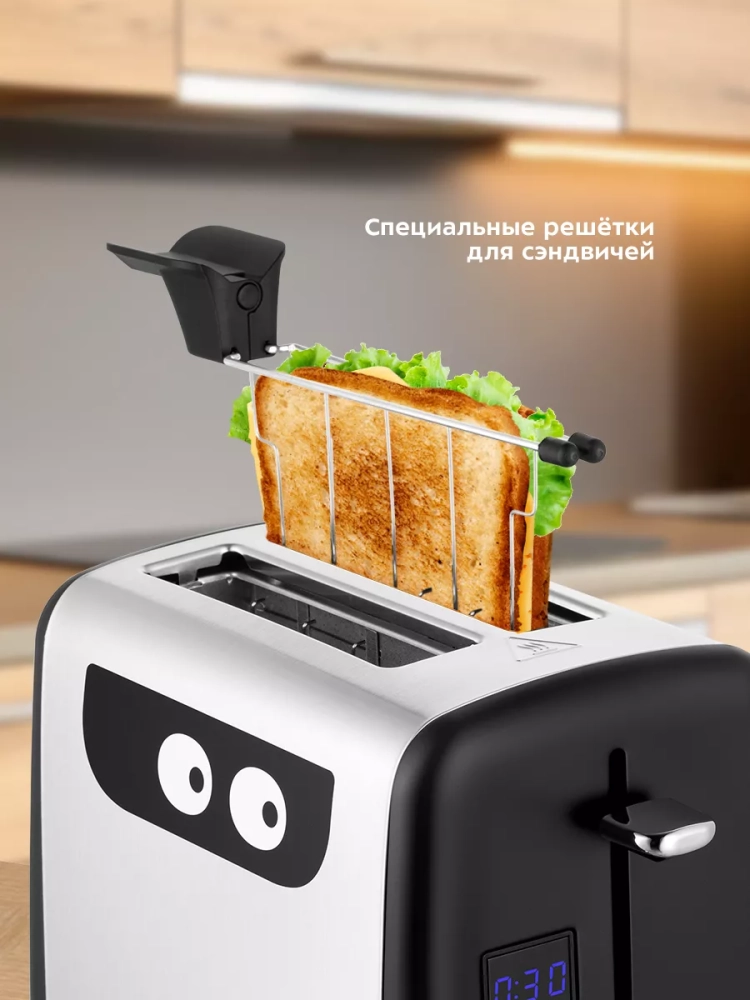 В комплекте идут две решетки для сэндвичей, которые обеспечивают равномерное обжаривание тостов и подогрев начинки.