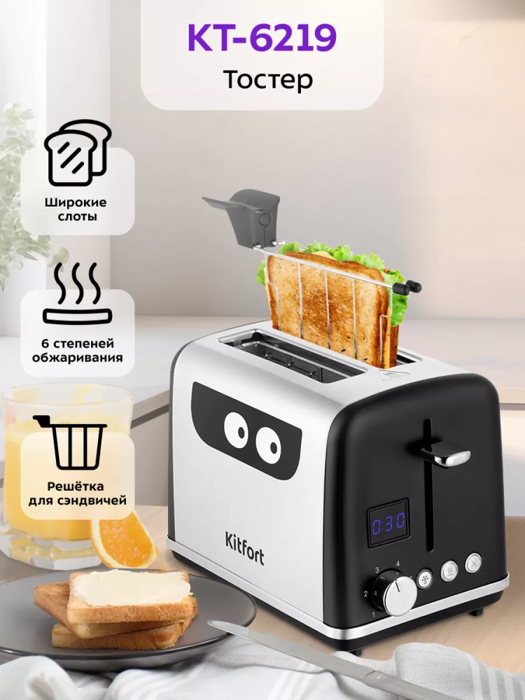 Электрический тостер Kitfort КТ-6219 создан для тех, кто любит полакомиться ароматным и хрустящим горячим поджаренным хлебом. Особый вкус и цвет корочки тостов получаются такими благодаря карамелизации сахара, содержащегося в муке, при инфракрасном нагреве в процессе приготовления.