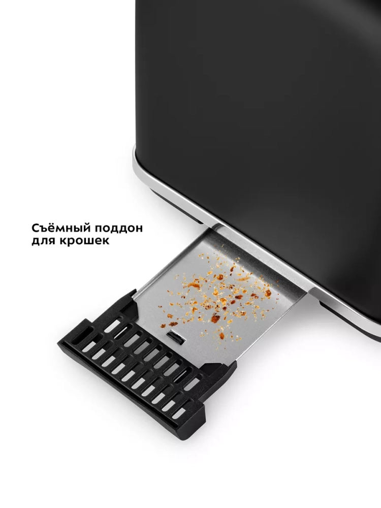 Съемный поддон для крошек позволяет легко и удобно очистить тостер от хлебных крошек.