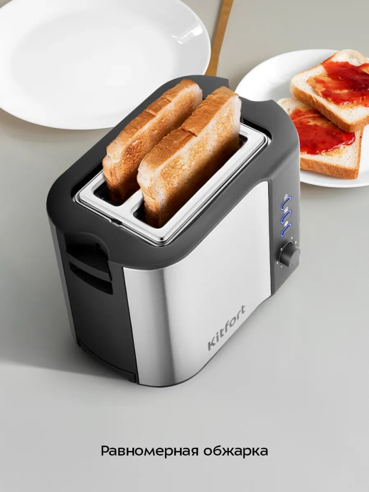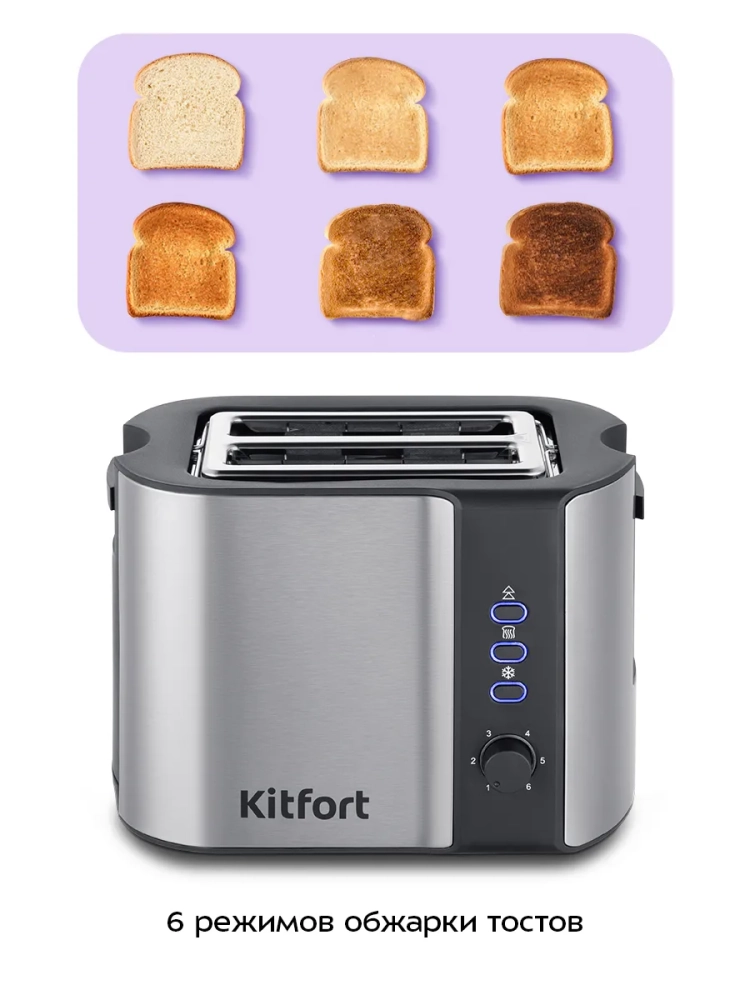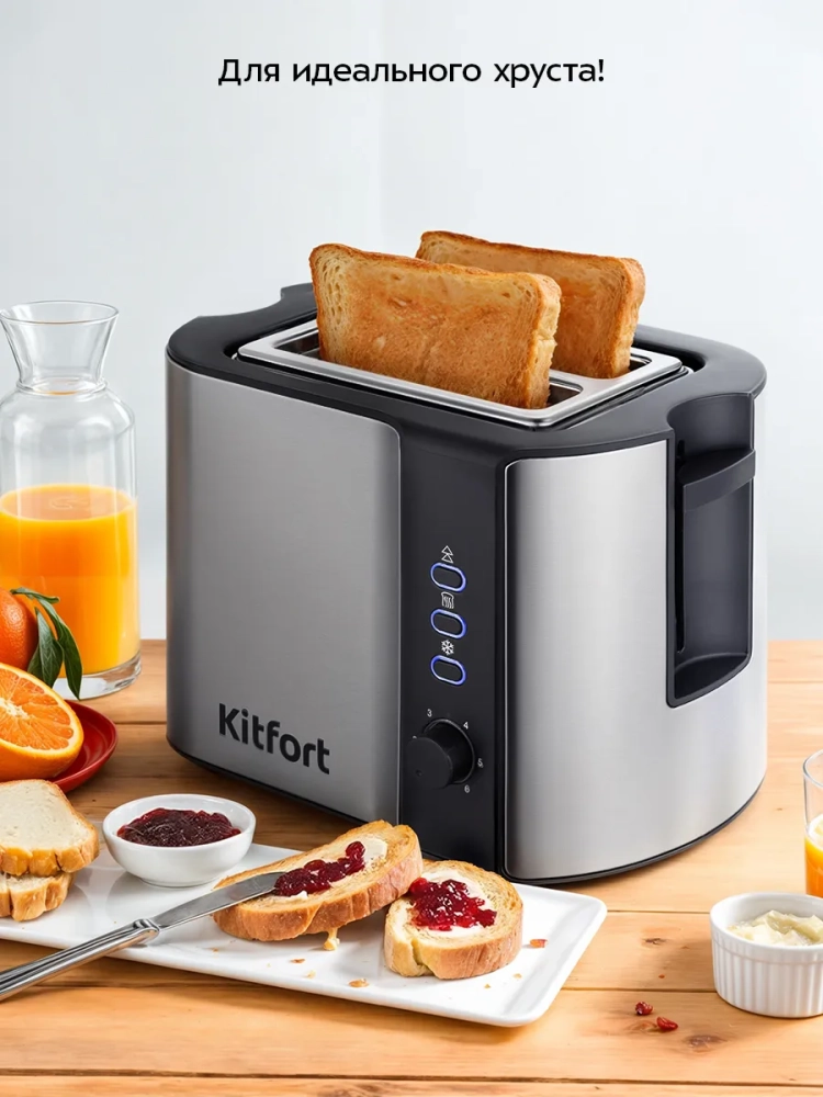 Электрический тостер Kitfort КТ-6249 создан для тех, кто любит полакомиться ароматным и хрустящим горячим поджаренным хлебом. Особый вкус и цвет корочки тостов получаются такими благодаря карамелизации сахара, содержащегося в муке, при инфракрасном нагреве в процессе приготовления.