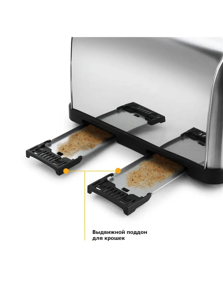 Снизу каждой секции расположен выдвижной поддон для крошек, поэтому чистить тостер просто и удобно.