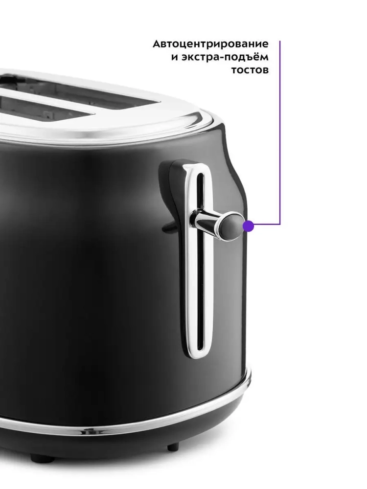 Тостер оснащен поворотным регулятором степени обжаривания и тремя кнопками со световыми индикаторами. Режим разогрева служит для разогрева уже готовых тостов, если они остыли. Режим разморозки позволяет приготовить тосты из замороженного хлеба. Благодаря широким слотам можно поджаривать толстые куски хлеба, а не только тонкие. Загруженные тосты автоматически центрируются, чтобы их обжарка с двух сторон была равномерной независимо от толщины куска. По окончании приготовления тостер автоматически отключается, а тосты поднимаются вверх, чтобы их было удобнее извлечь. Механизм экстра-подъема позволяет приподнять тосты выше для удобного извлечения тостов небольшого размера. Вы можете приготовить 1 или 2 тоста одновременно.