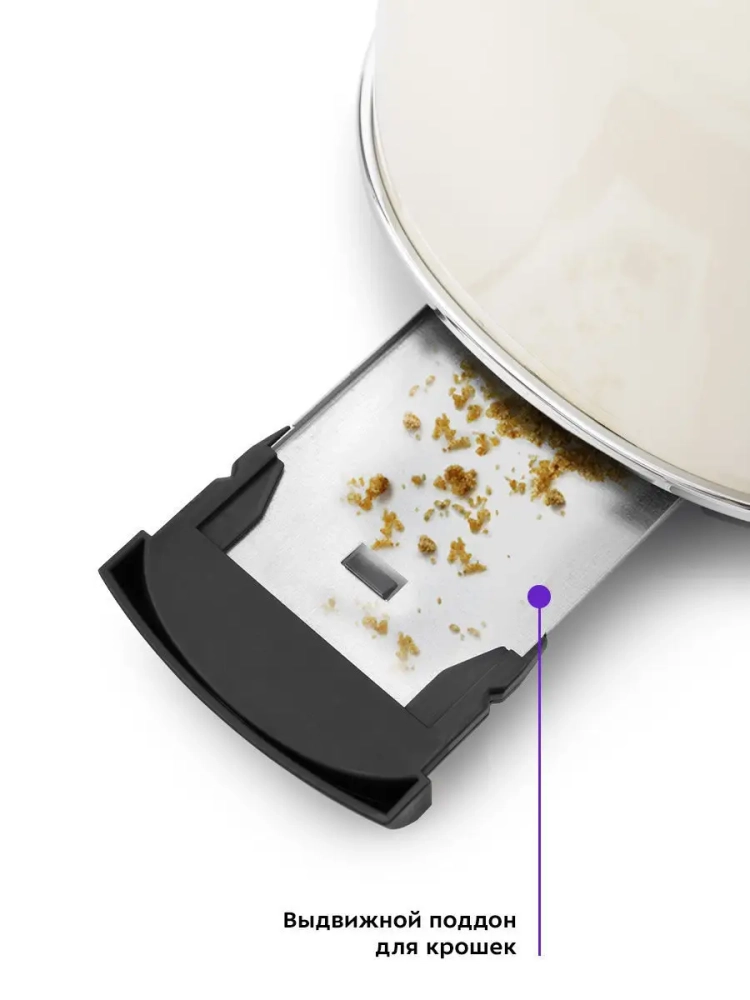 Снизу расположен выдвижной поддон для крошек, поэтому чистить тостер просто и удобно.
