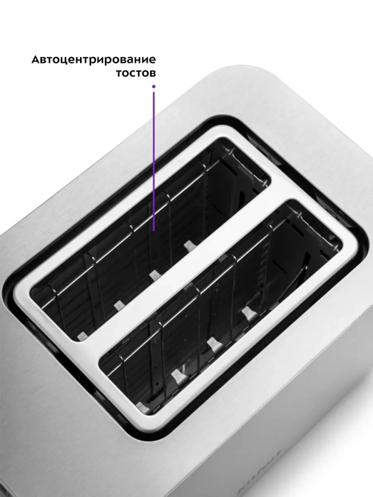 Широкие слоты для тостов позволяют поджаривать не только тонкие ломтики хлеба, но и толстые. Загруженные тосты автоматически центрируются, чтобы их поджарка с двух сторон была равномерной независимо от толщины куска. По окончании приготовления тостер автоматически отключается, а тосты поднимаются вверх, чтобы их было удобнее извлечь. Вы можете приготовить 1 или 2 тоста одновременно.