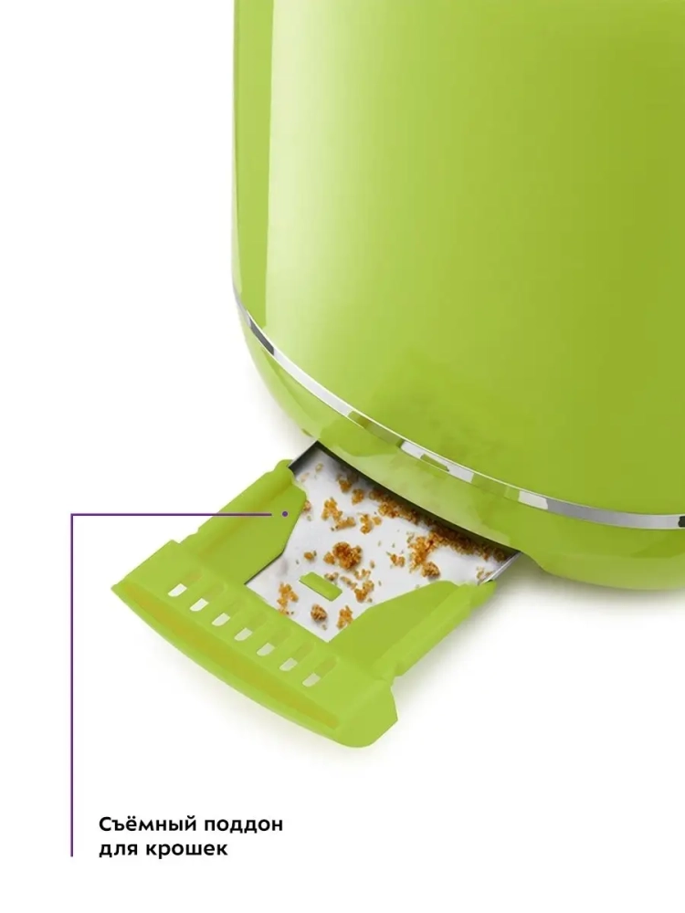 Снизу расположен выдвижной поддон для крошек, поэтому чистить тостер просто и удобно.