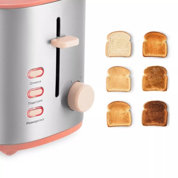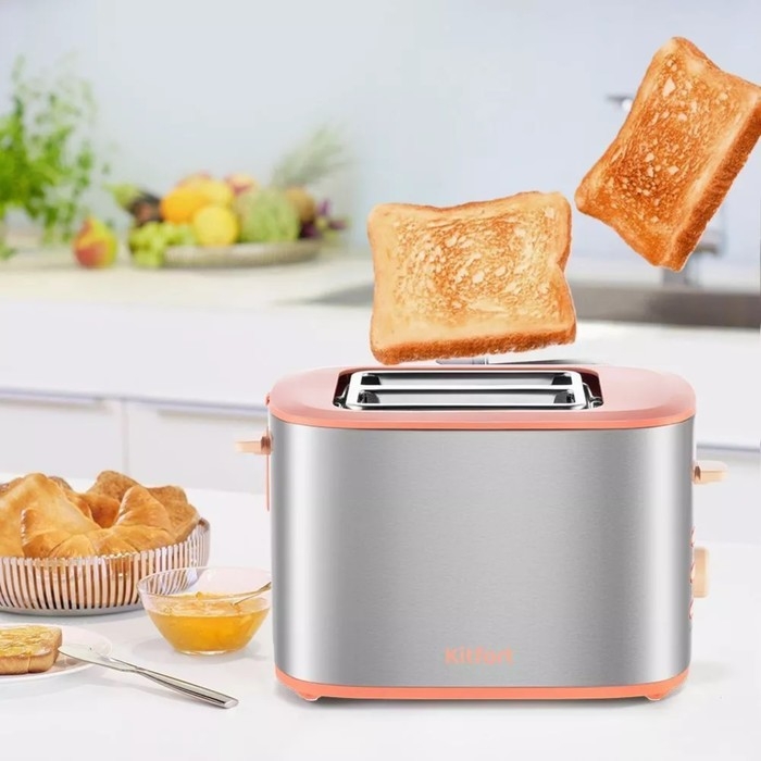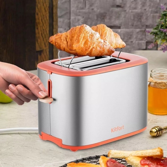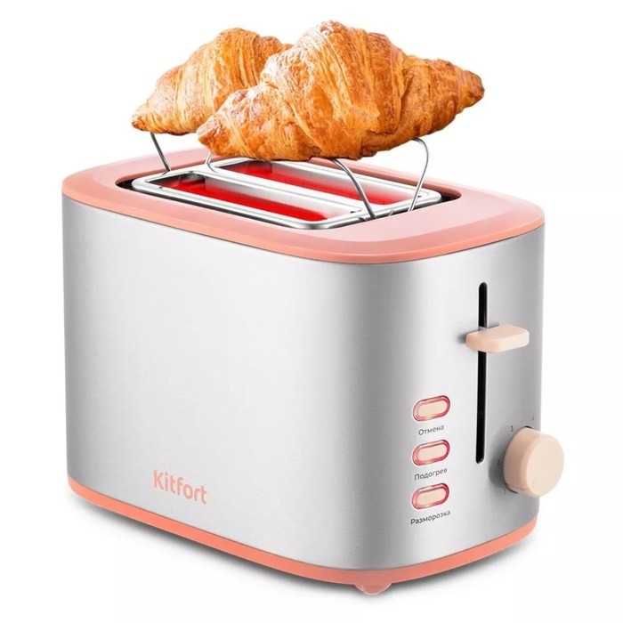 Тостер Kitfort КТ-6216, 980 Вт, 7 режимов прожарки, 2 тоста, металлик/оранж