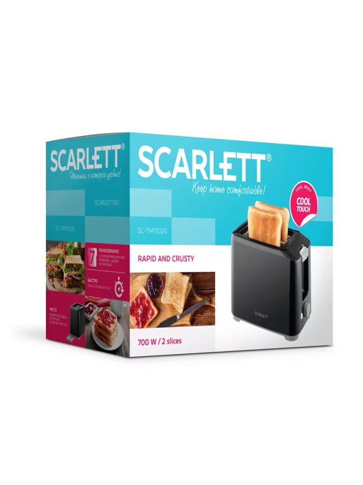 Тостер c 7 степенями равномеркой прожарки. Уникальное сочетание компактных размеров и технологии Cool Touch позволит сэкономить место на кухне и предостеречь от ожога,за счет холодного корпуса.Выдвижной поддон для крошек поможет сохранить ваш стол чистым.Подсветка кнопки Cancel облегчит пользование прибором. Классическое сочетание цветов тостера SC - TM11020 впишется в любой интерьер.