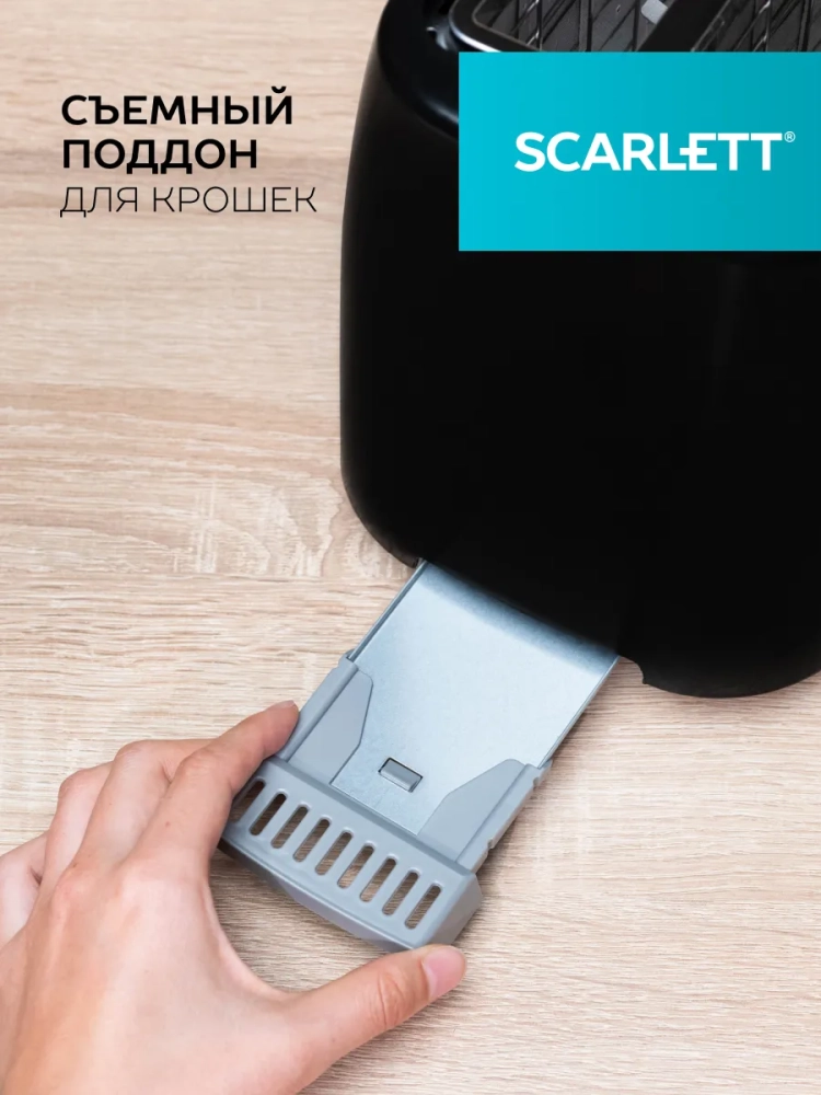 Помимо стильного дизайна прибора, который впишется в интерьер любой кухни, тостер наделен дополнительными удобствами, такими как: прорезиненные ножки для повышенной устойчивости на рабочей поверхности, отсек для хранения электрошнура и выдвижной поддон для крошек для сохранения чистоты стола.