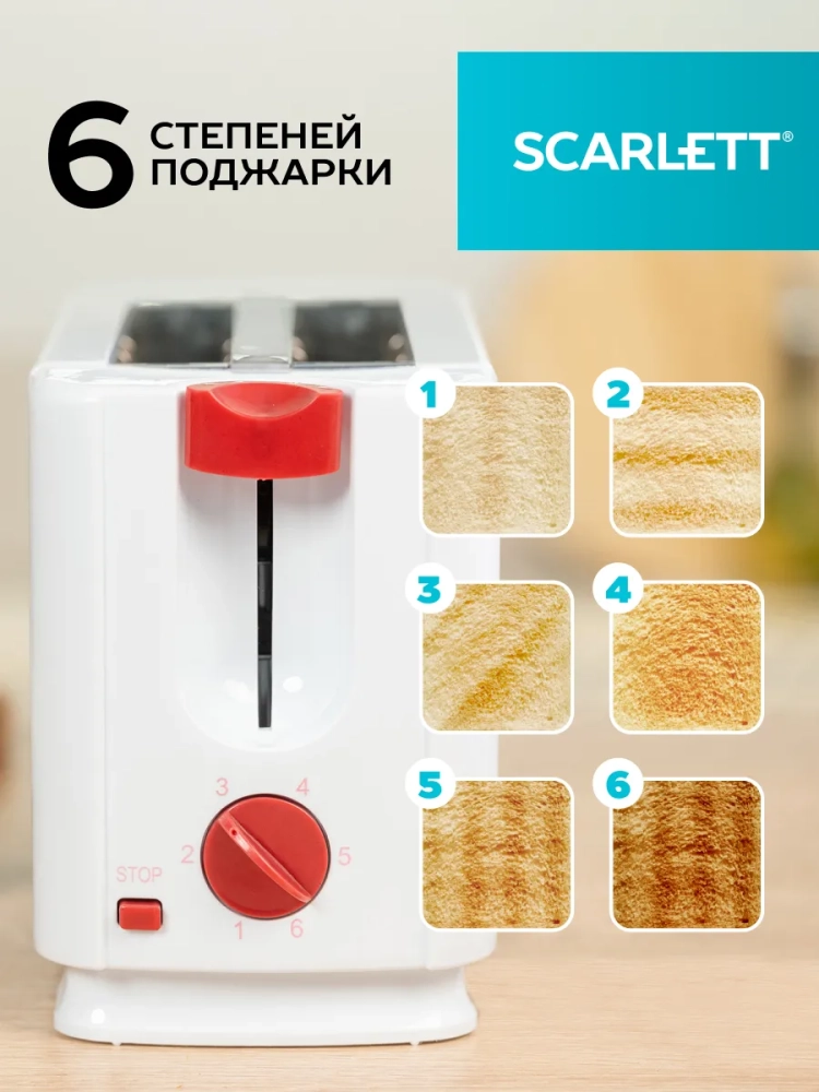 Тостер Scarlett SC-TM11013, белый с 6 степенями равномерной прожарки. Данная модель имеет 6 степеней обжаривания, а с простым механическим управлением справится даже ребенок. Также для более комфортного использования предусмотрен съемный лоток для крошек, который легко снимается и моется. Компактный размер прибора и система хранения шнура позволят сэкономить место на Вашей кухне, а выдвижной поддон для крошек сохранит стол чистым. Практичный тостер SCARLETT SC-TM11013 выполнен в универсальном белом цвете, который отлично дополнит любой интерьер на вашей кухне, а за счет компактного размера он не займет много места. Современные технологии, высококачественные материалы и профессиональная сборка отвечают за длительный эксплуатационный срок без поломок. Яркое сочетание цветов тостера SC-TM11013 идеально впишется в интерьер Вашей кухни!