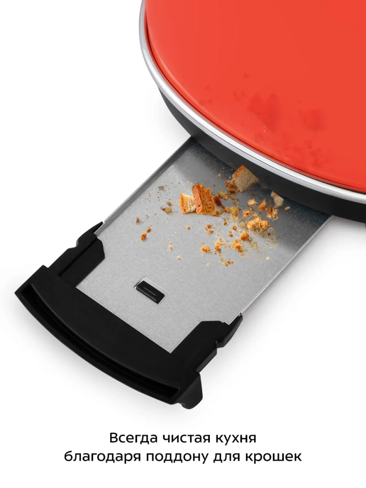 Съемный поддон для крошек позволяет легко и удобно очистить тостер от хлебных крошек.