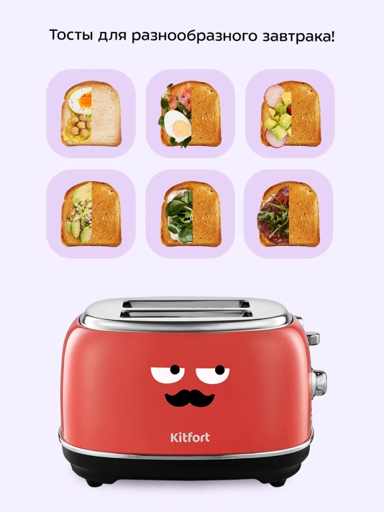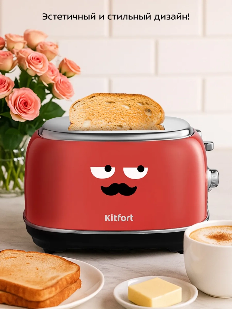 Электрический тостер Kitfort КТ-6457 создан для тех, кто любит полакомиться ароматным и хрустящим поджаренным хлебом. Особый вкус и цвет корочки тостов получаются такими благодаря карамелизации сахара, содержащегося в муке, при инфракрасном нагреве в процессе приготовления.