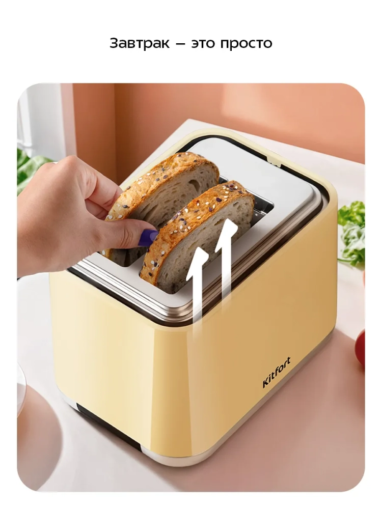 Электрический тостер Kitfort КТ-6558 создан для тех, кто любит полакомиться ароматным и хрустящим поджаренным хлебом. Особый вкус и цвет корочки тостов получаются такими благодаря карамелизации сахара, содержащегося в муке, при инфракрасном нагреве в процессе приготовления.