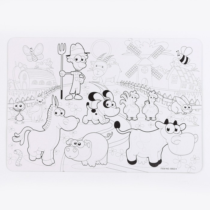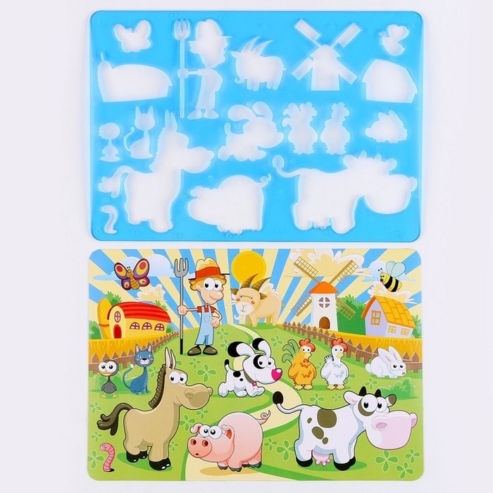 Трафарет для малышей «Весёлая ферма» с раскраской