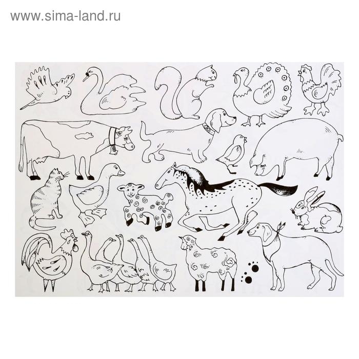Набор трафарет-раскраска Calligrata, 6 штук (овощи, домашние животные, цветы, бабочки, лесные звери, фрукты), для девочек