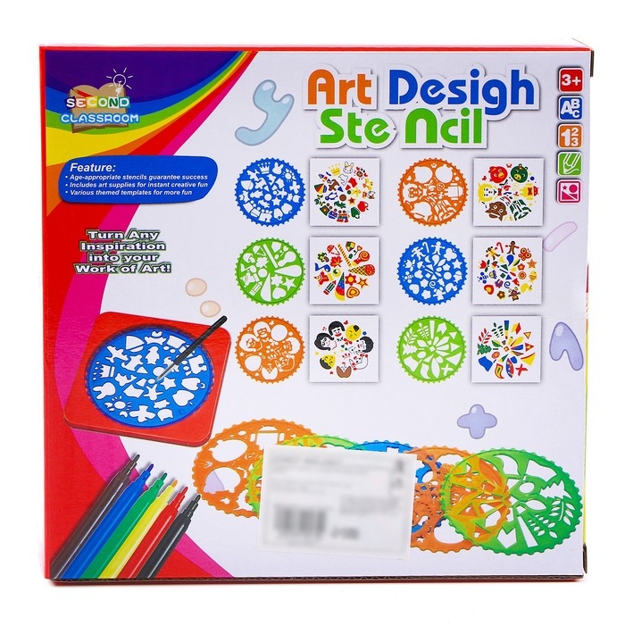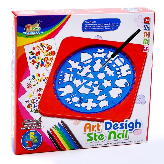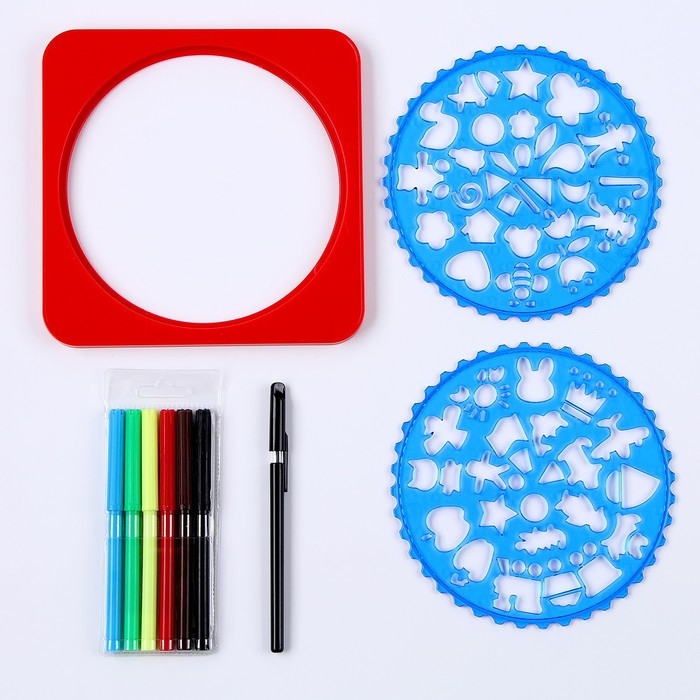 Трафареты «Дизайн» набор 2 шт., фломастеры 6 шт., ручка, бумага