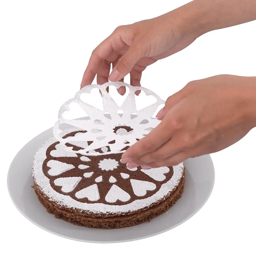 Трафареты станут незаменимыми помощниками в украшении выпечки. С их помощью можно нанести узор на поверхность торта, пряника, печенья, хлеба, кулича, кекса, пирога и других изделий. Они изготавливаются из тонкого гибкого пластика, поэтому прекрасно держат форму, не сминаются и не размокают. Трафарет можно приложить как к прямой, так и к округлой поверхности и даже на угол. Используйте для декора сахарную пудру, какао порошок или кулинарную посыпку. Изготовлено: пластмасса (полипропилен). Размер: диаметр 17,5 см.