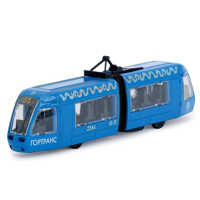 Трамвай металлический с гармошкой 19 см, световые и звуковые эффекты, инерционный