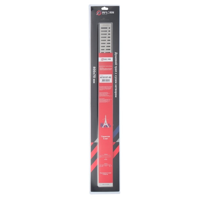 Трап линейный AFLORN AF20107-80, 800х70 мм, c флaнцeм своб. вращения 360°, нерж. сталь