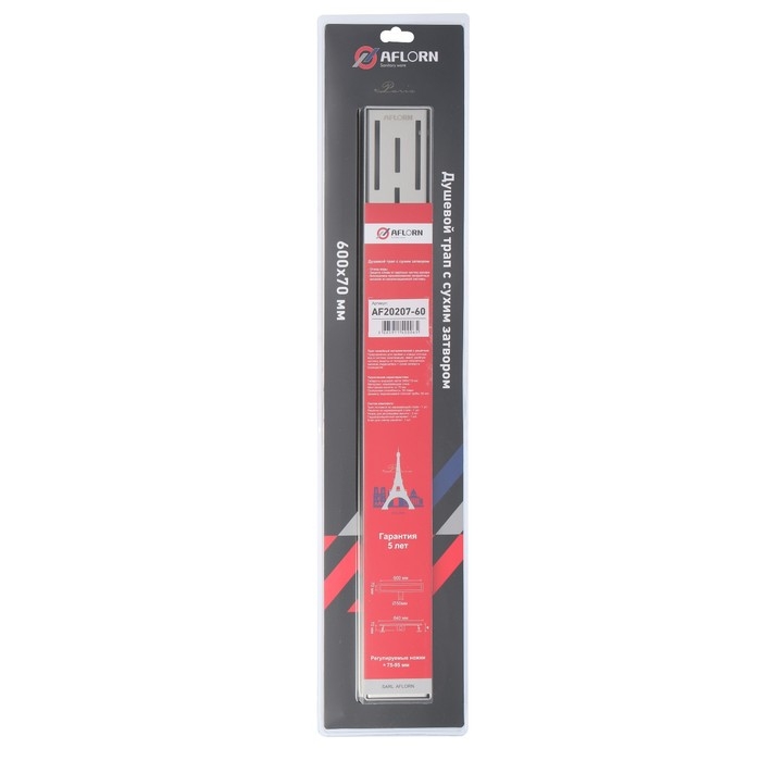 Трап линейный AFLORN AF20207-60, 600х70 мм, c флaнцeм своб. вращения 360°, нерж. сталь