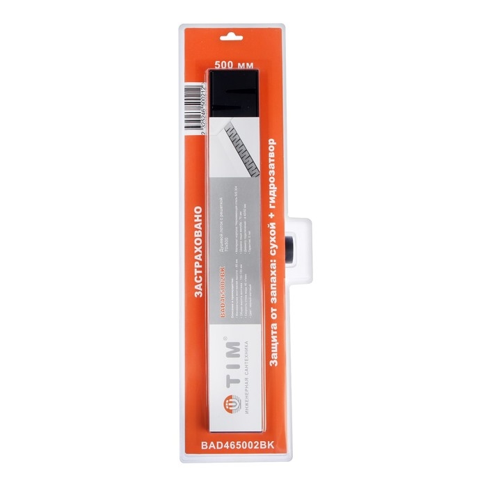Трап TIM BAD465002BK, 70 х 500 мм, гидро+сухая защита от запаха, черный матовый