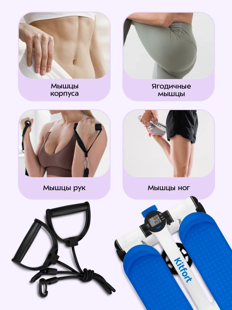 Степпер Kitfort КТ-9813 — кардиотернажер, имитирующий ходьбу и подъем по лестнице за счет переноса веса с ноги на ногу. Название тренажера произошло от английского слова «step», которое переводится как «шаг». Суть тренировки заключается в том, чтобы нажимать на педали — делать шаги. На корпусе есть ручка регулировки высоты педалей, чтобы плавно изменять нагрузку при необходимости. Чем больше высота педалей, тем больше нагрузка на мышцы во время тренировки.