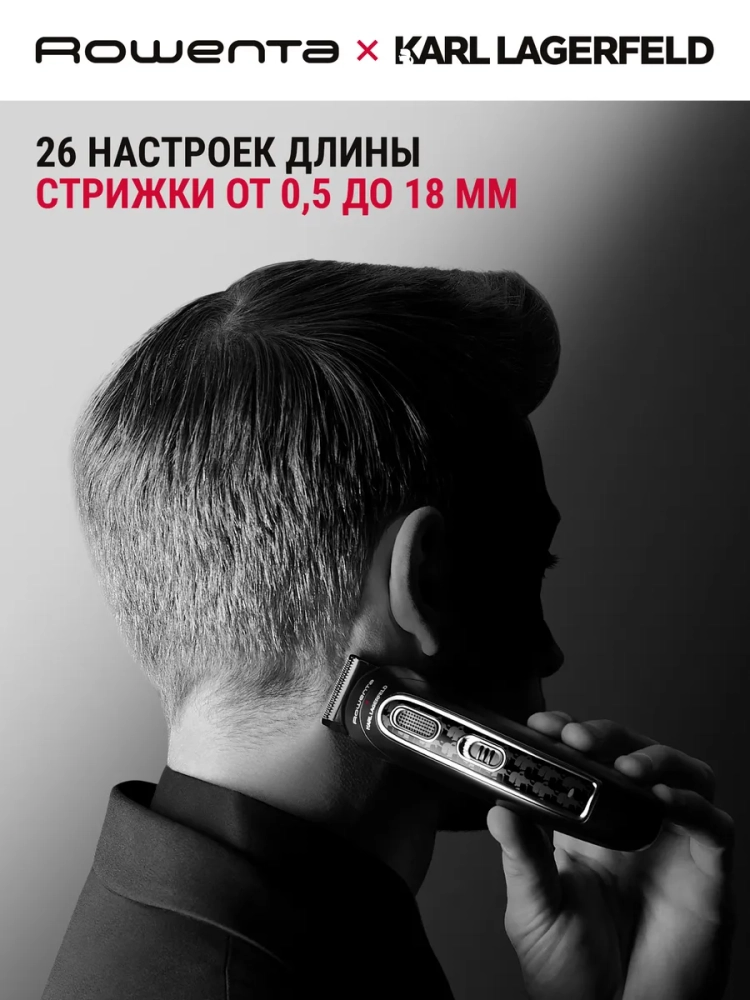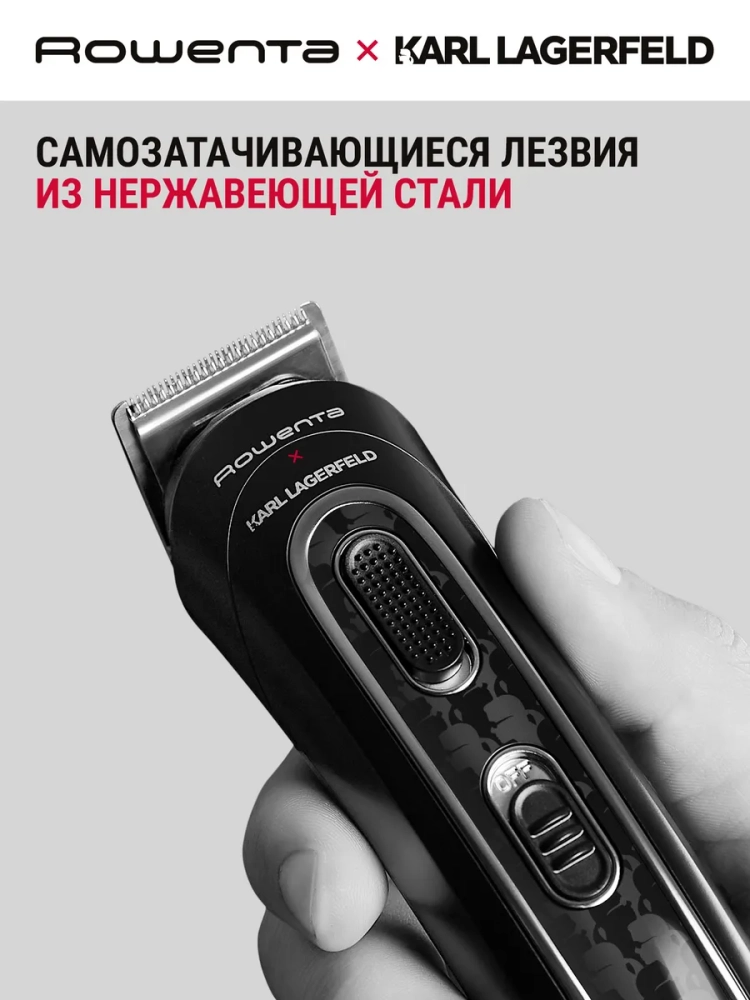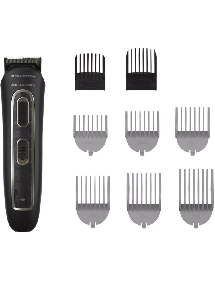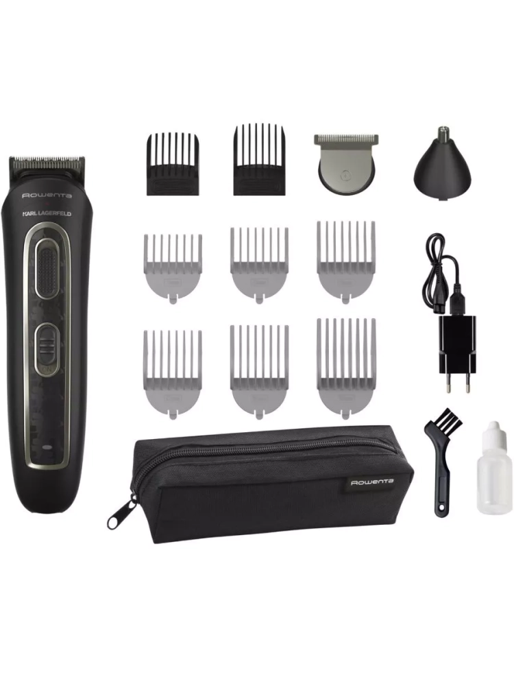 Мужской триммер 12 в 1 Rowenta Karl Lagerfeld Trim & Style TN911LF0. Идеальное решение для стрижки волос и бороды 12 в 1. Подарите идеальный уход своим волосам и бороде с помощью универсального мульти-триммера в водонепроницаемом корпусе 12 в 1 Rowenta x KARL LAGERFELD Trim & Style.