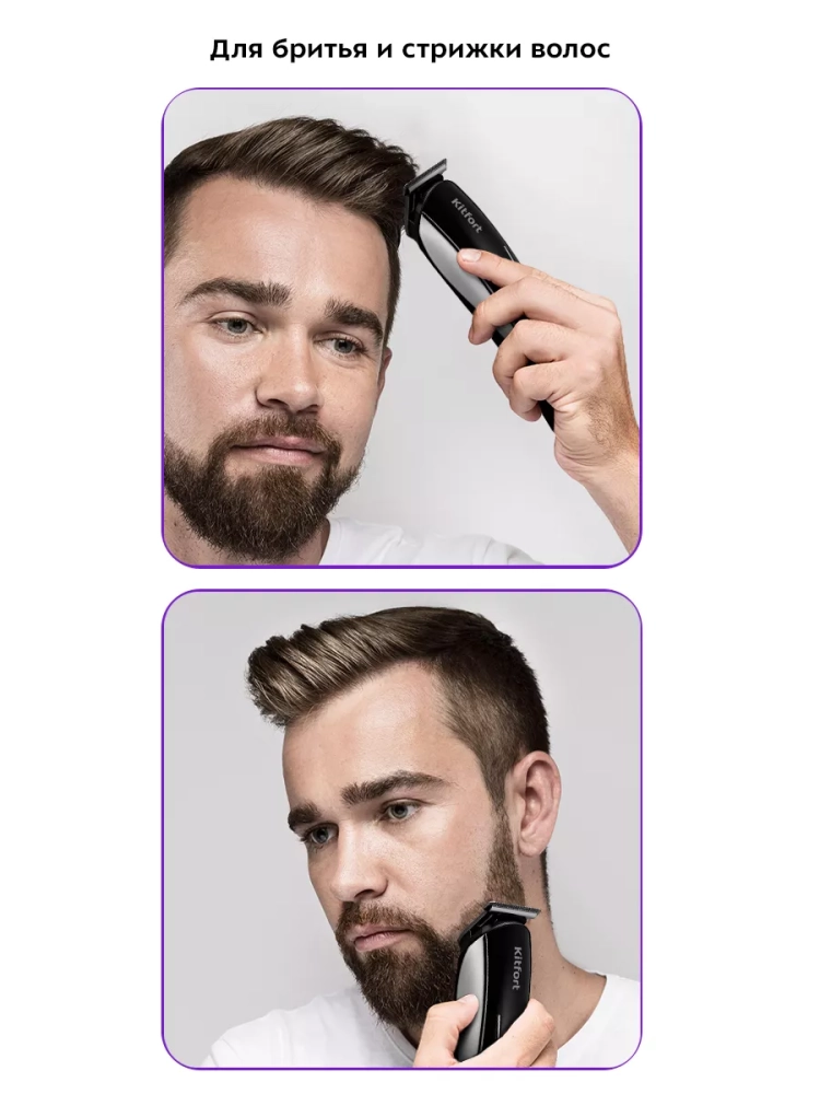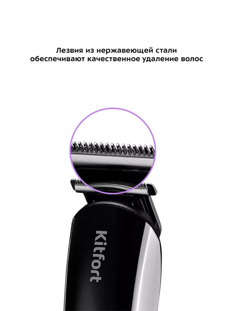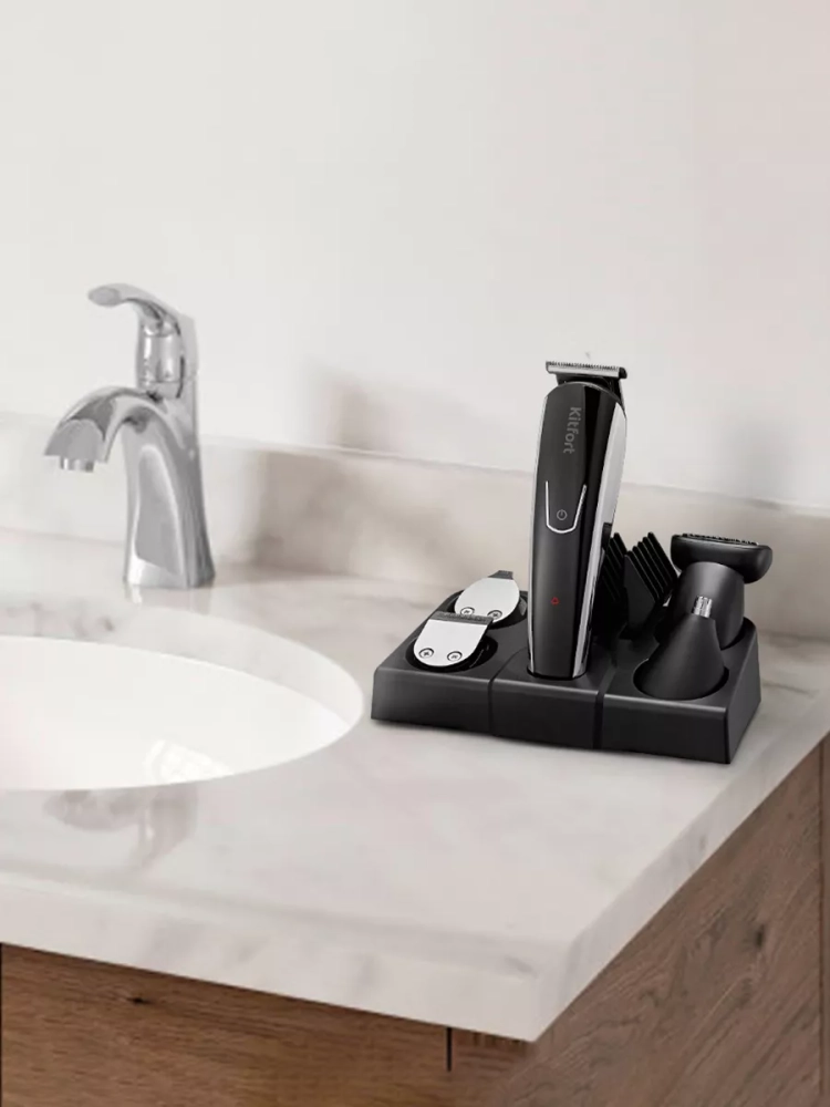 Триммер «2 в 1» Kitfort KT-3109 — это прибор для бритья, стрижки и подравнивания бороды, усов или бакенбард, а также для стрижки волос в носу и ушах. Триммер очень прост в использовании — управление устройством осуществляется единственной кнопкой на корпусе. Лезвия сменных насадок из нержавеющей стали обеспечивают качественное и тщательное удаление волос. Корпус триммера компактен, что в сочетании с длительным временем работы позволяет брать его с собой в командировки, походы и путешествия. У триммера Китфорт КТ-3109 в комплект идут четыре гребня на 3, 6, 9 и 12 мм, гребень с регулировкой длины, который рассчитан на стрижку коротких волос. Также в комплект идет насадка с широкими лезвиями, насадка с узкими лезвиями, насадка для носа, насадка для точной стрижки, которой вы с легкостью сможете подровнять брови или усы, насадка-сетка, которая рассчитана для бритья волос на теле. В комплекте к триммеру идет щетка для чистки лезвий и бутылочка с маслом. С их помощью вы можете с легкостью ухаживать за триммером и поддерживать его в чистоте и исправном состоянии.