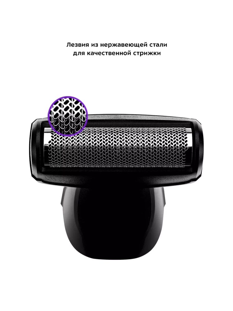 Триммер очень прост в использовании — управление устройством осуществляется единственной кнопкой на корпусе. Лезвия сменных насадок из нержавеющей стали обеспечивают качественное и тщательное удаление волос. Корпус триммера компактен, что в сочетании с длительным временем работы от аккумулятора позволяет брать его с собой в командировки, походы и путешествия в кейсе, который идет в комплекте.