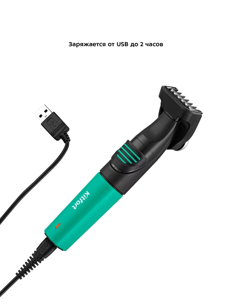 У триммера Китфорт КТ-3139 в комплект идет гребень с регулировкой длины, который рассчитан на стрижку коротких волос. Также в комплекте есть насадка для носа, которой также можно удалять волосы из ушей, насадка-сетка для бритья короткой щетины, насадка-триммер для бритья и подравнивания волос на лице и насадка для тела.