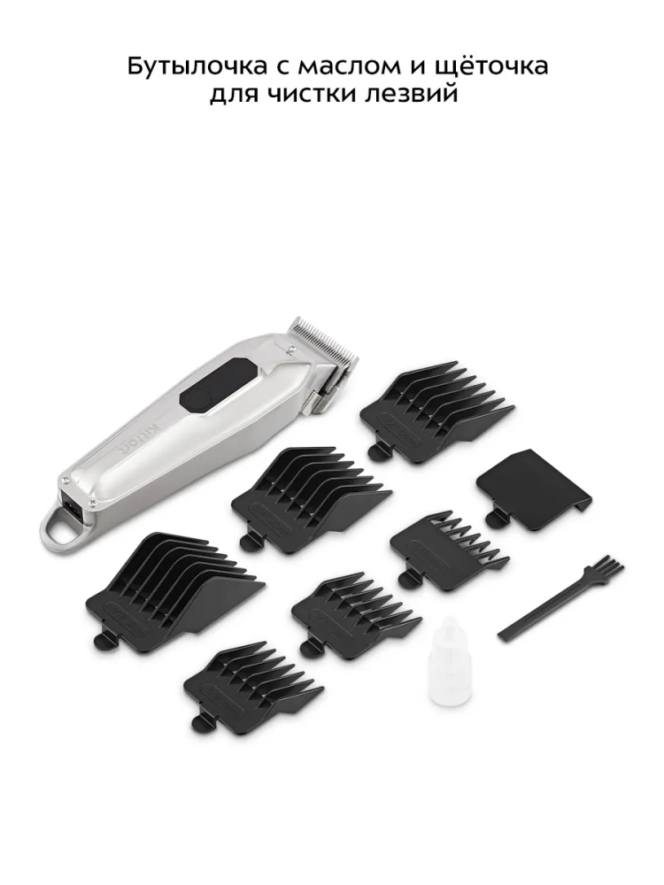 С помощью бутылочки с маслом и щеточки для чистки лезвий вы можете с легкостью ухаживать за триммером и поддерживать его в чистоте и исправном состоянии.