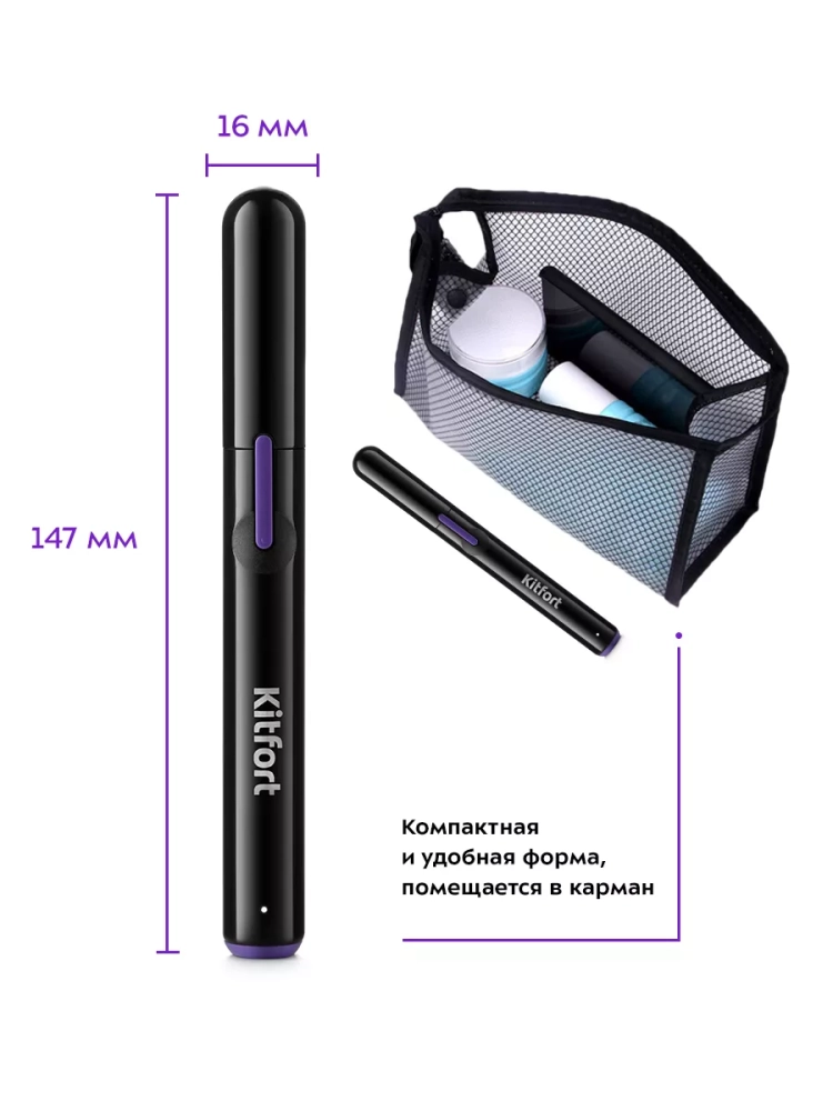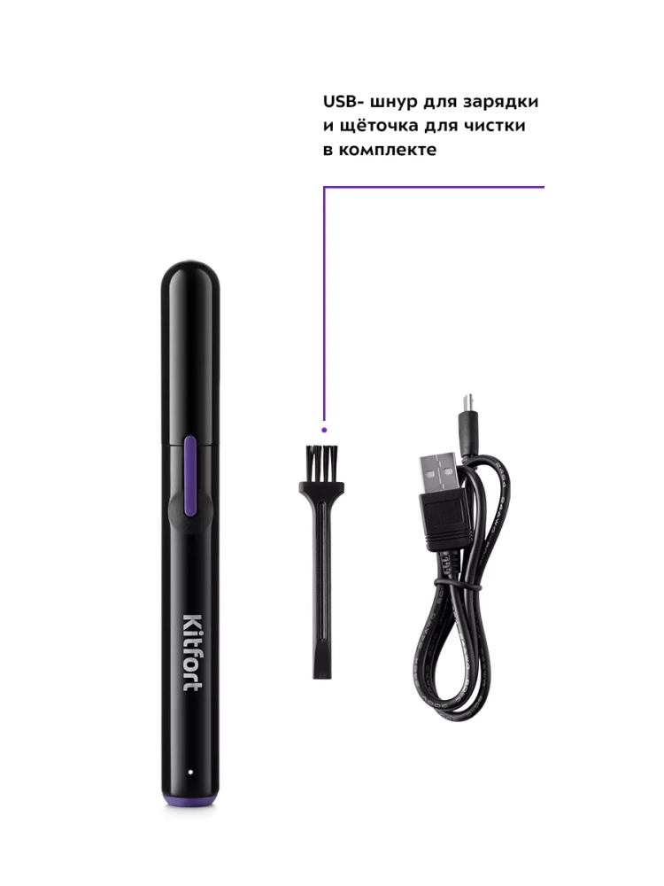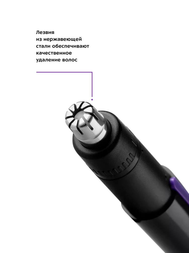 Триммер для носа Kitfort KT-3104 - портативное устройство для быстрой и безболезненной стрижки волос в носу. Триммер очень прост в использовании - управление устройством осуществляется единственной кнопкой на корпусе. Лезвия триммера, выполненные из нержавеющей стали, обеспечивают качественную стрижку волос. Лезвия и режущий блок легко снимаются с корпуса, благодаря чему их легко очищать после каждого использования. Простота использования триммера и острота его лезвий позволяют удалить нежелательные волоски всего за несколько минут. Для ухода за устройством в комплекте идет щеточка для очистки - с ее помощью вы можете удалить оставшиеся после стрижки волоски с лезвий и режущего блока триммера. Триммер закрывается колпачком, который защищает режущий блок и лезвия от пыли и прочих загрязнений. Устройство отличается быстрой зарядкой - для полного заряда аккумулятора потребуется всего 10 минут. При полном заряде устройство может непрерывно работать в течение 15-20 минут.