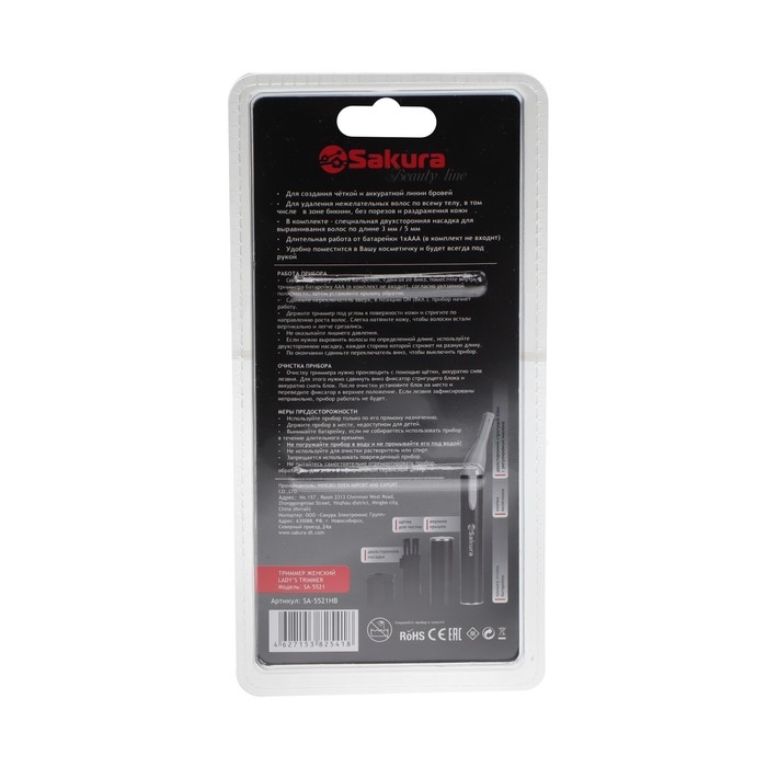 Триммер для волос Sakura SA-5521HB, для тела/лица, 1хААА (не в компл.), чёрный