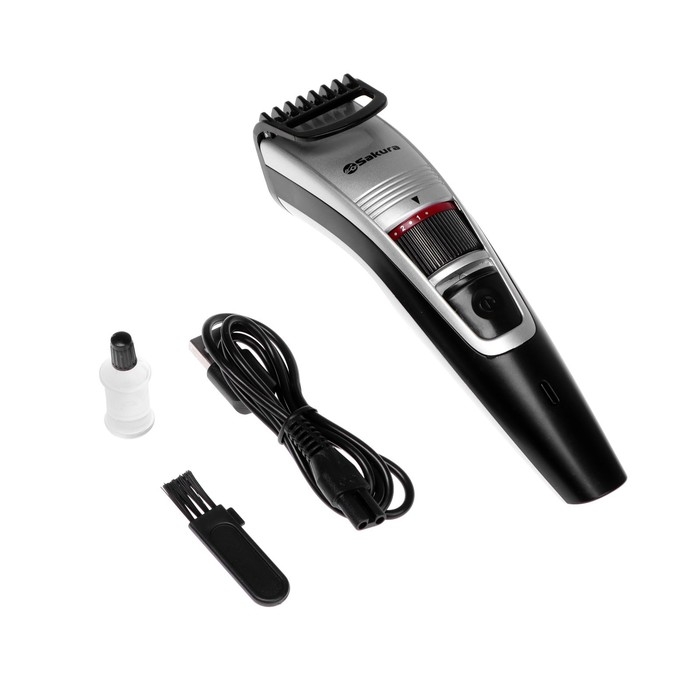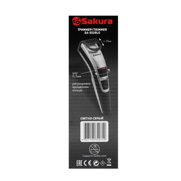 Триммер для волос Sakura SA-5529LG, для бороды/усов, 0.5-10 мм, АКБ, серебристо-чёрный