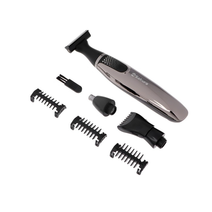 Триммер Sakura SA-5533BK, для бороды/усов/носа/ушей, 1-5 мм, 4 насадки, АКБ, чёрный