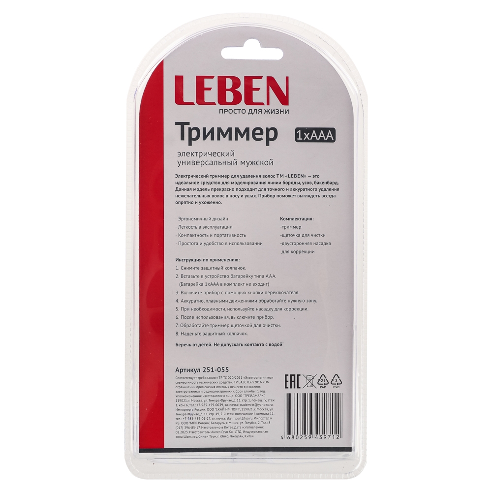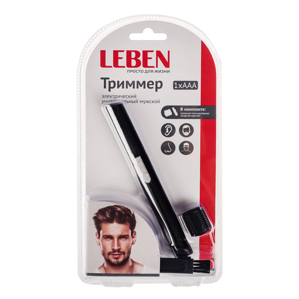 Электрический триммер для удаления волос ТМ Leben - это идеальное средство для моделирования линии бороды, усов, бакенбардов. Данная модель прекрасно подходит для точного и аккуратного удаления нежедательных волос в носу и ушах. Прибор поможет выглядеть всегда опрятно и ухоженно.