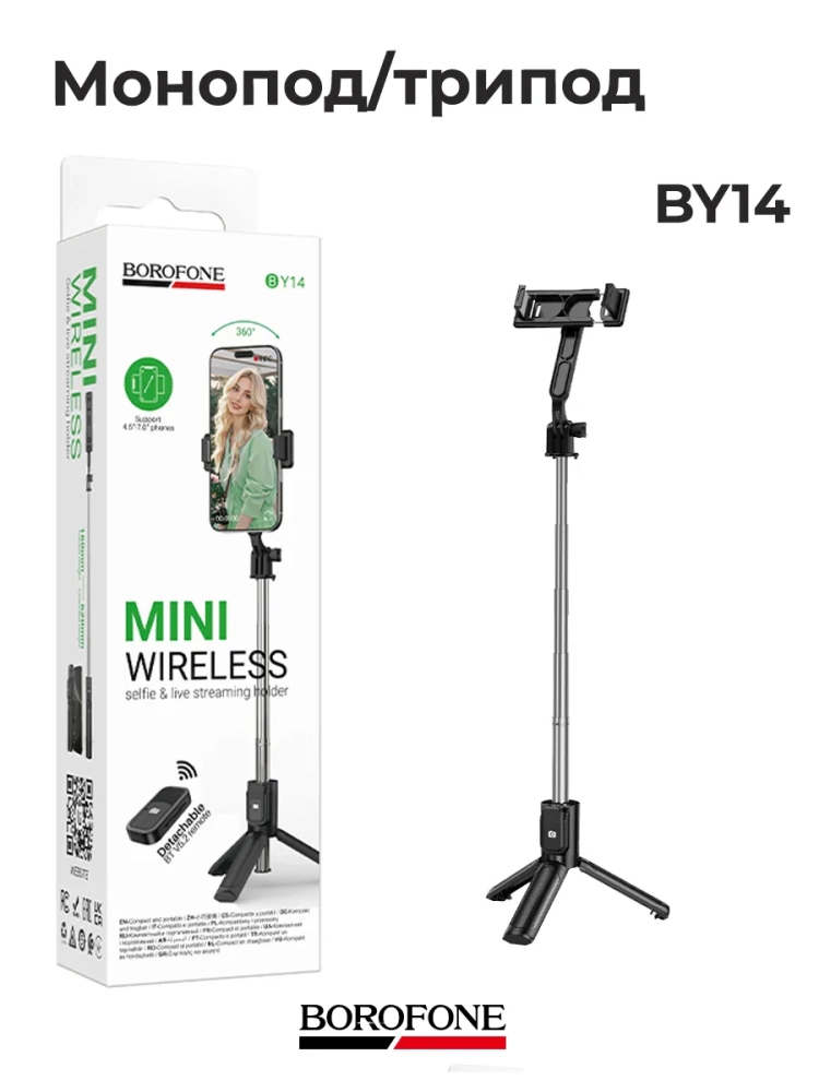 Монопод-трипод Borofone BY14 — это не просто селфи палка, а целый набор возможностей для творчества. Он станет отличным дополнением к вашему арсеналу аксессуаров для телефона. Легкий и компактный, этот штатив легко помещается в сумку, что делает его идеальным спутником для путешествий и отпуска.
