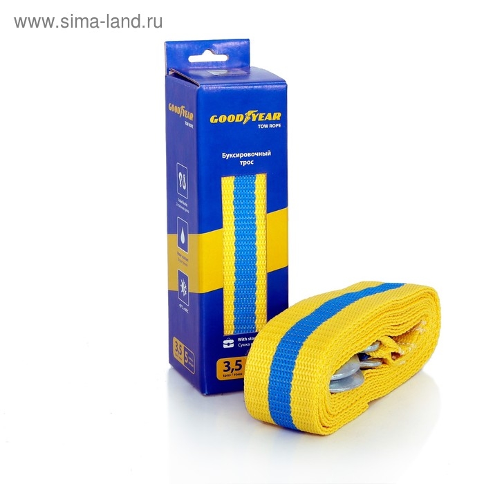 Буксировочный трос Goodyear предназначен для перемещения автомобиля общей массой до 3,5 тонн. Незаменим в условиях бездорожья и в аварийных ситуациях. Трос изготовлен из сверхпрочной полипропиленовой нити. Она обеспечивает прочность и устойчивость ленты троса к влаге, воздействию нефтепродуктов и других химических соединений. Стальные крюки обеспечивают прочную сцепку. Трос имеет оптимальную длину, что позволяет буксировать автомобиль на безопасном расстоянии, не теряя управляемость буксируемого автомобиля.