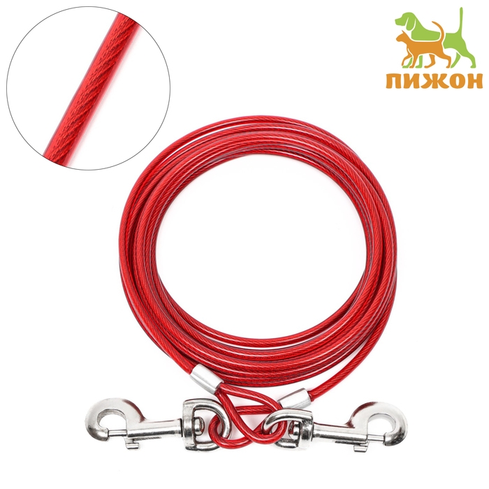 Трос для привязи собак с 2 карабинами, 5 м, толщина троса 5 мм
