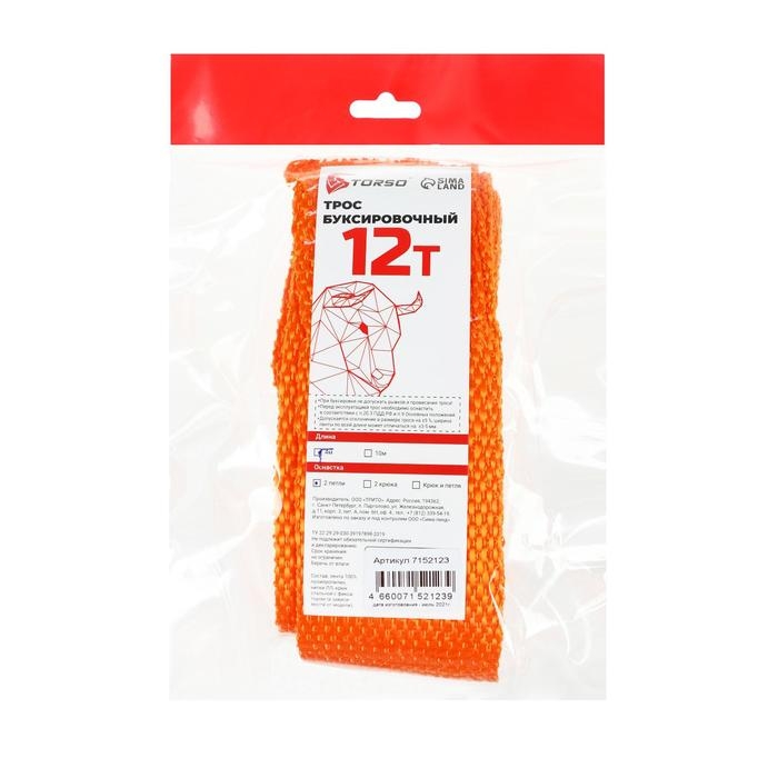 Трос-лента буксировочный TORSO, 12 т, 4 м, 2 петли