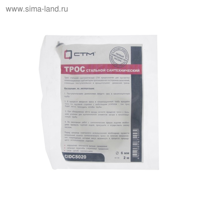 Трос сантехнический "СТМ", с вращающейся ручкой, d=6 мм, L= 2 м
