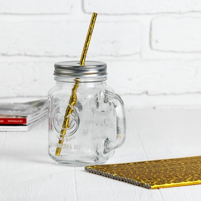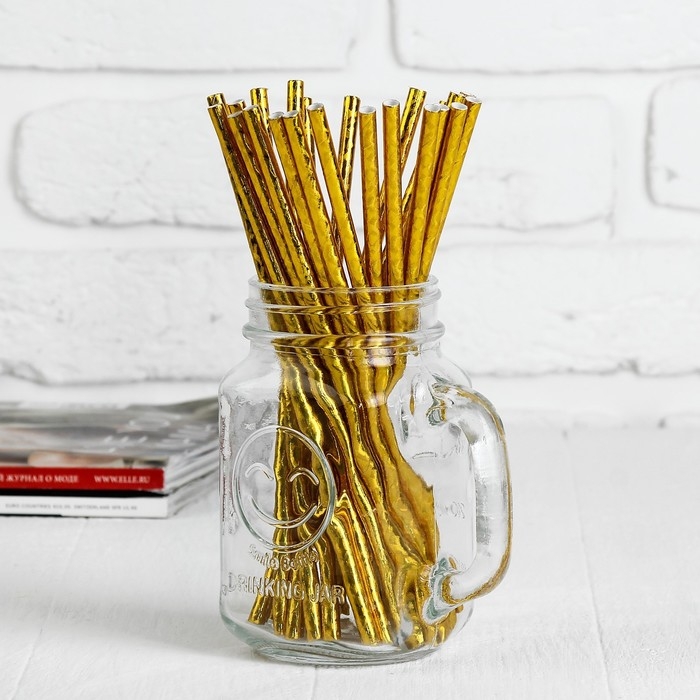 Трубочка для коктейля «Полоска», набор 12 шт., цвет золотой
